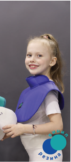 Пелерина защищает плечевой пояс и верхнюю часть грудной клетки пациента при черепных и стоматологических исследованиях. Стойка закрывает щитовидную железу.